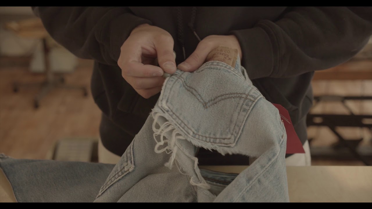 La boutique est sobre, un mix entre atelier et micro-showroom. On y retrouve les fameux jeans et toutes les machines qu‘il utilise pour les retouches et altérations.