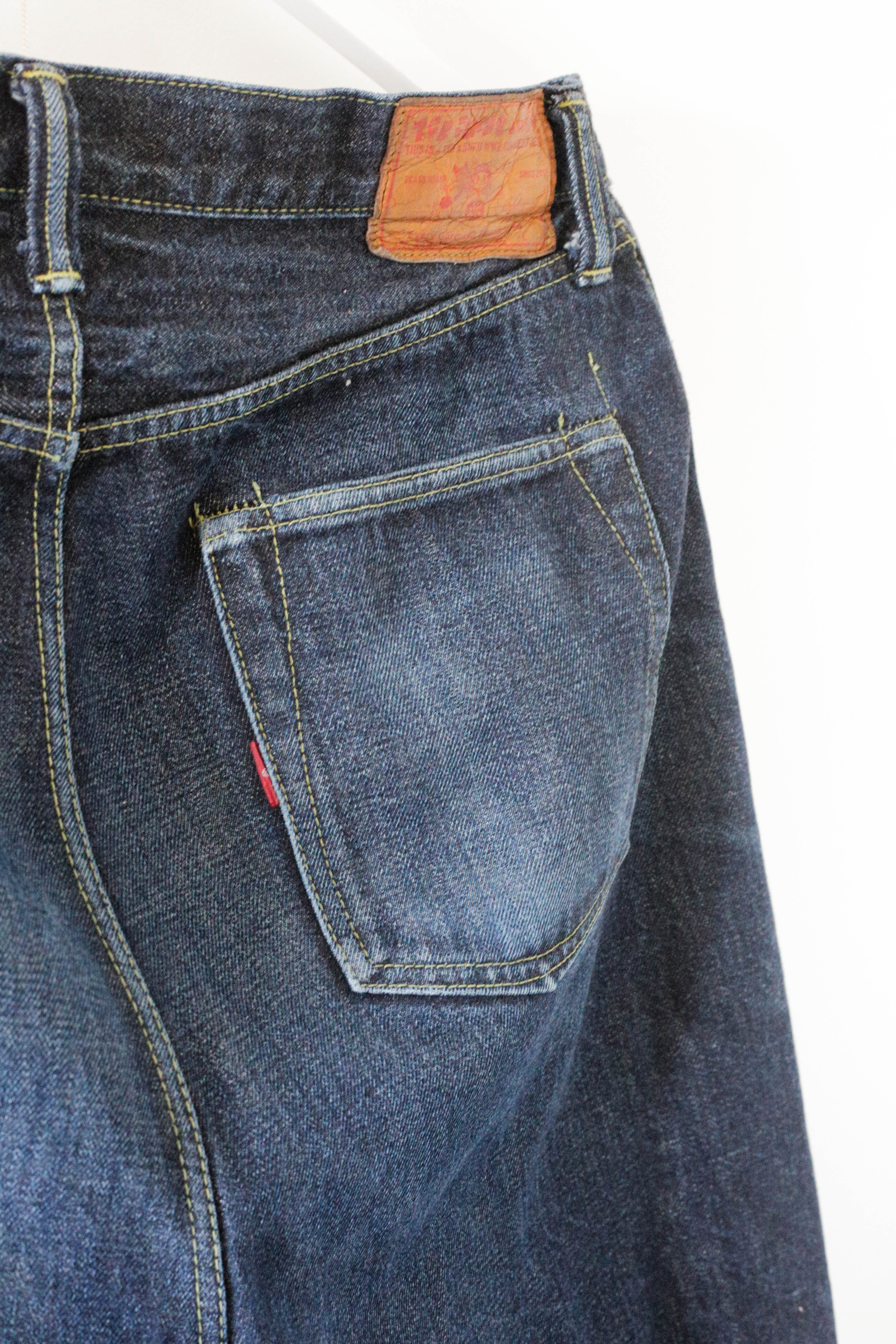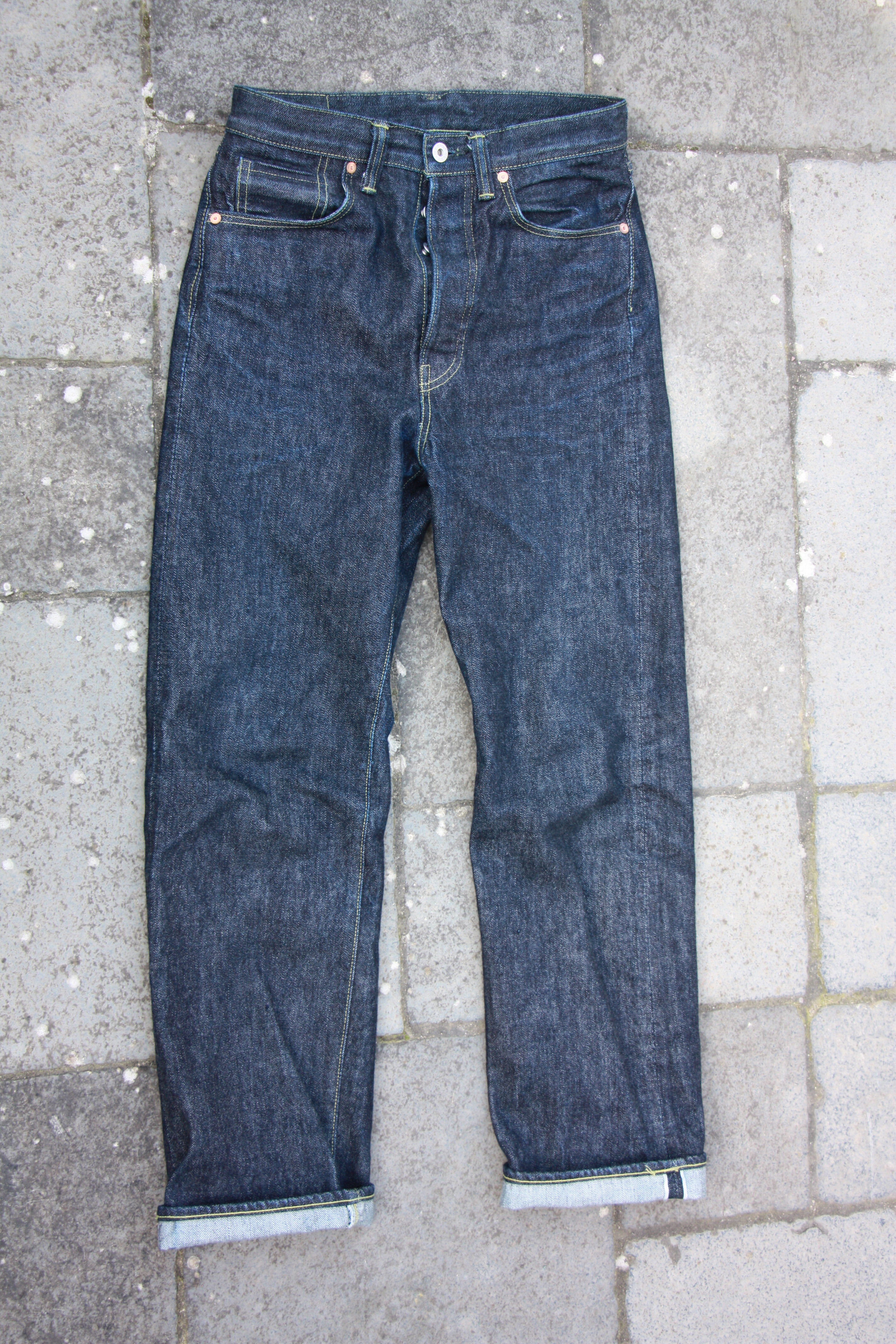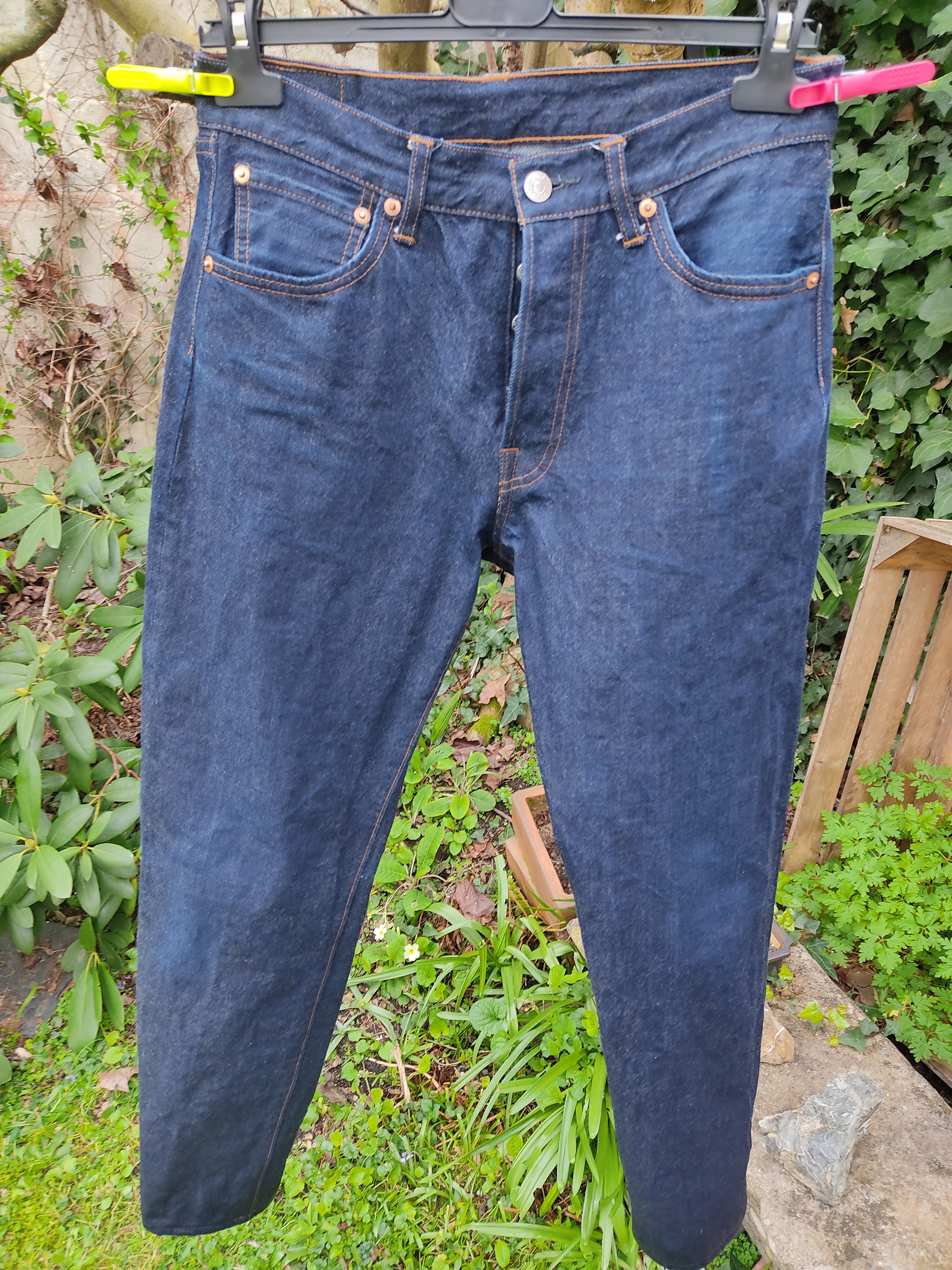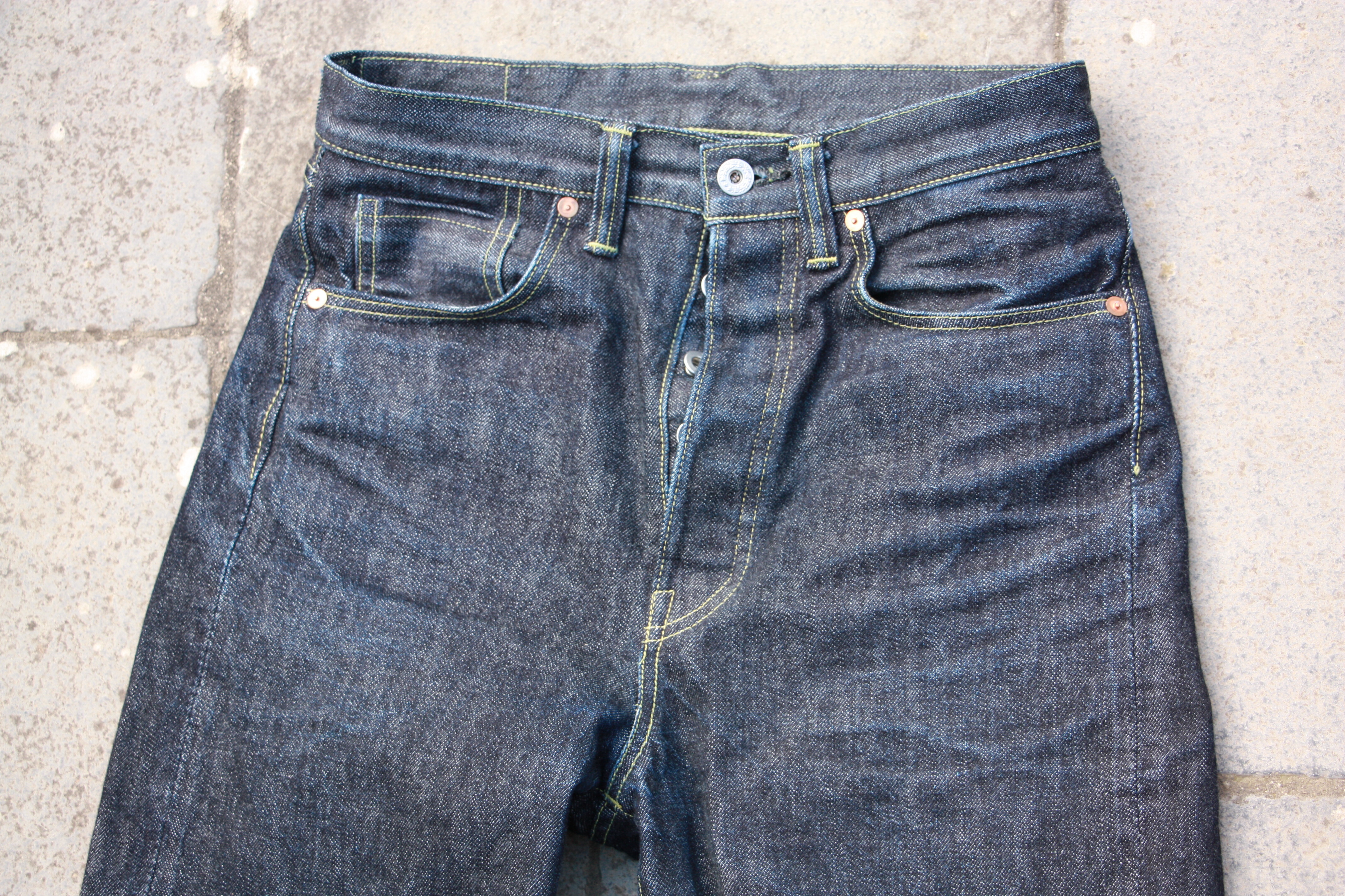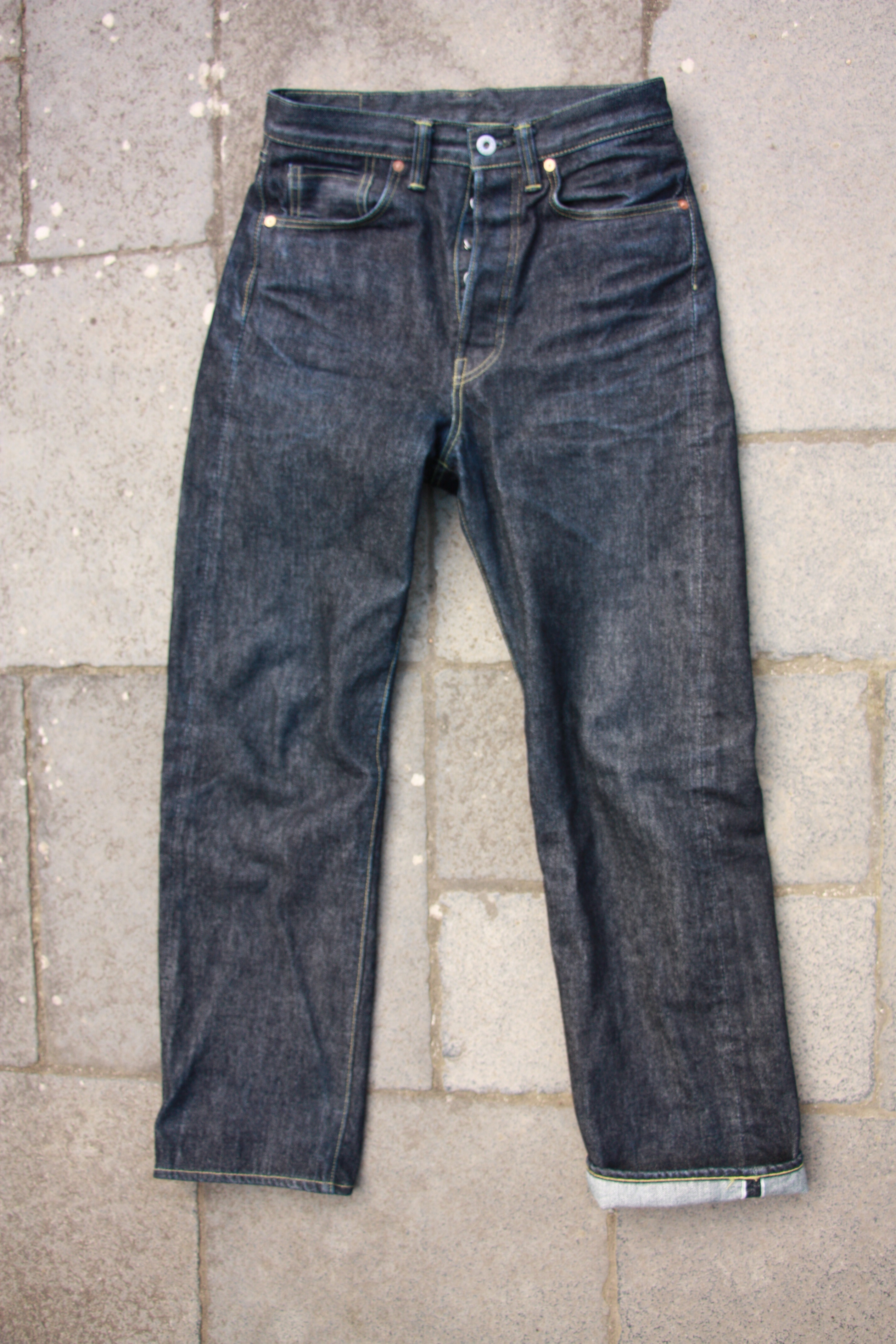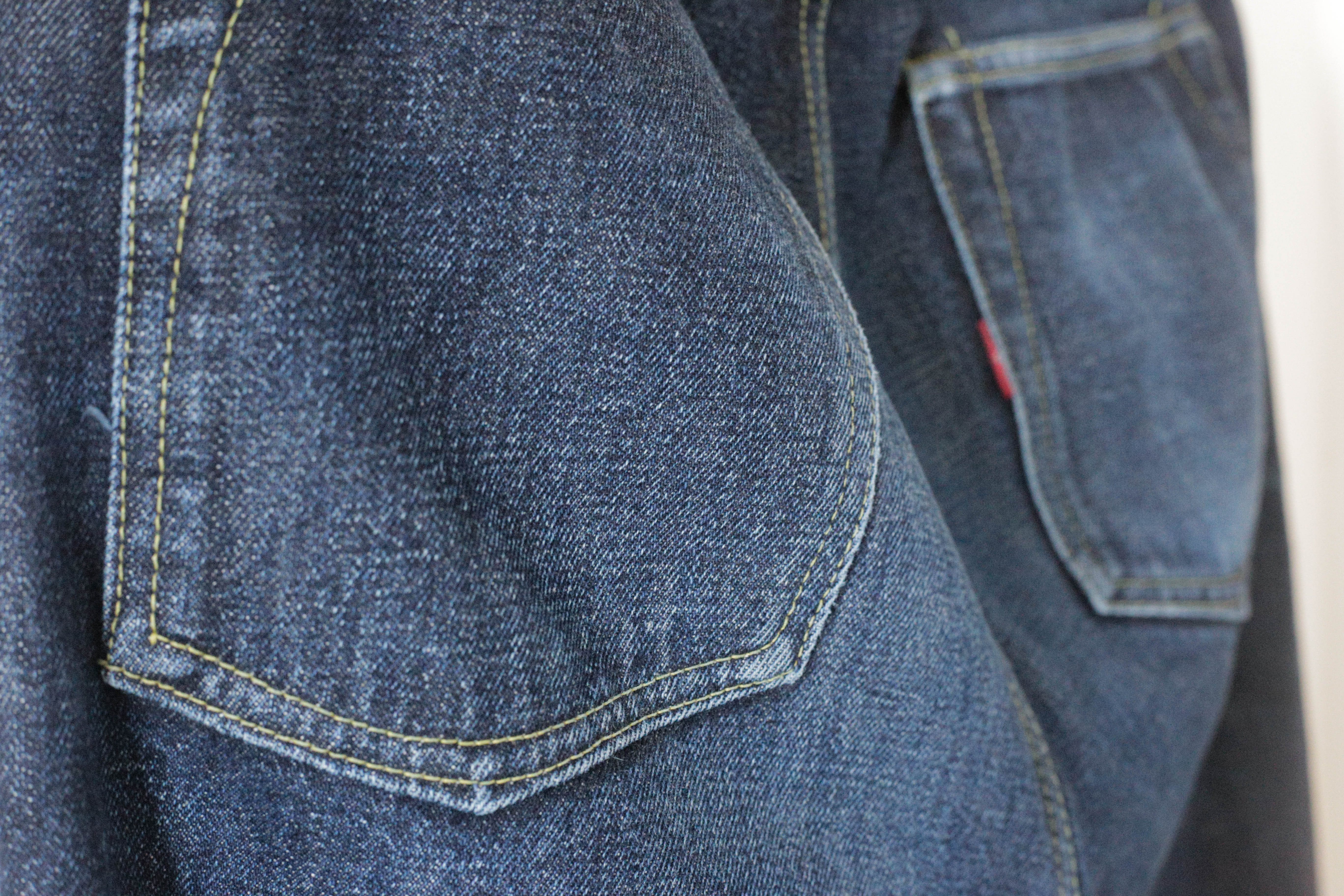 Après tout je crois que c’est un modèle qu’on voit moins. Je l’ai chopper en seconde main et son précédent propriétaire a déjà fait un lavage en machine avec la lessive de SuperStitch mais j’ai préféré repartir sur un lavage à la main pour le moment. Je repasserais sur un lavage en machine plus tard . Ah il a aussi eu droit à un soak a l’eau froide pour pouvoir étirer un peu la fourche et la taille a la main qui était un peu étroites sinon.