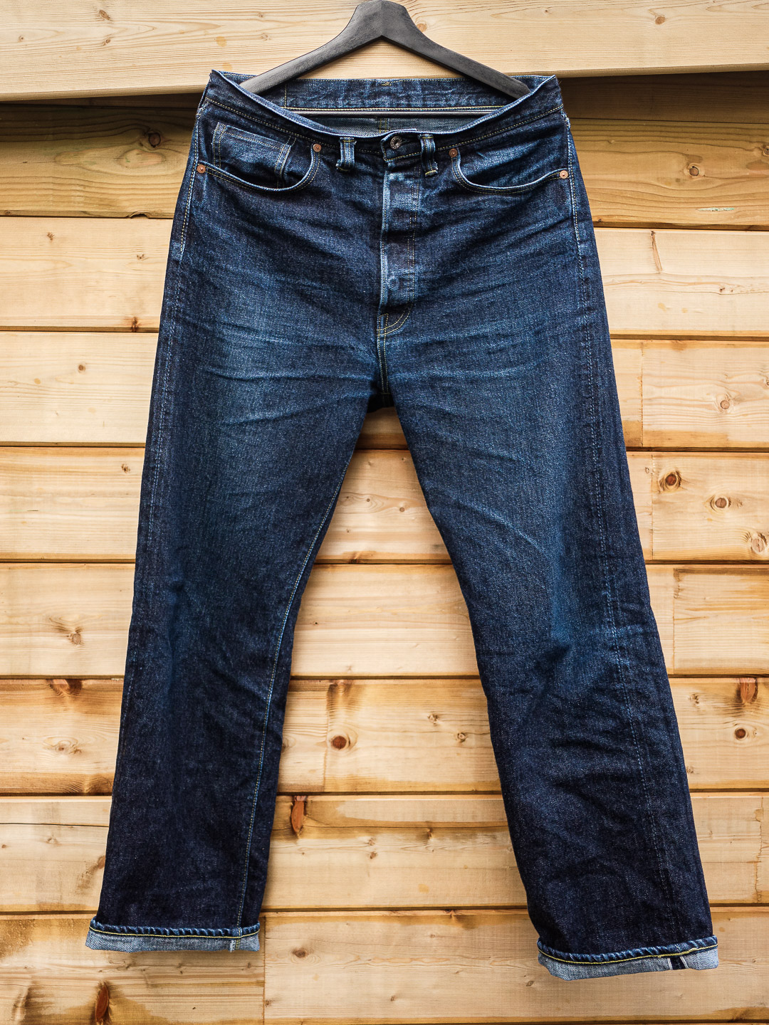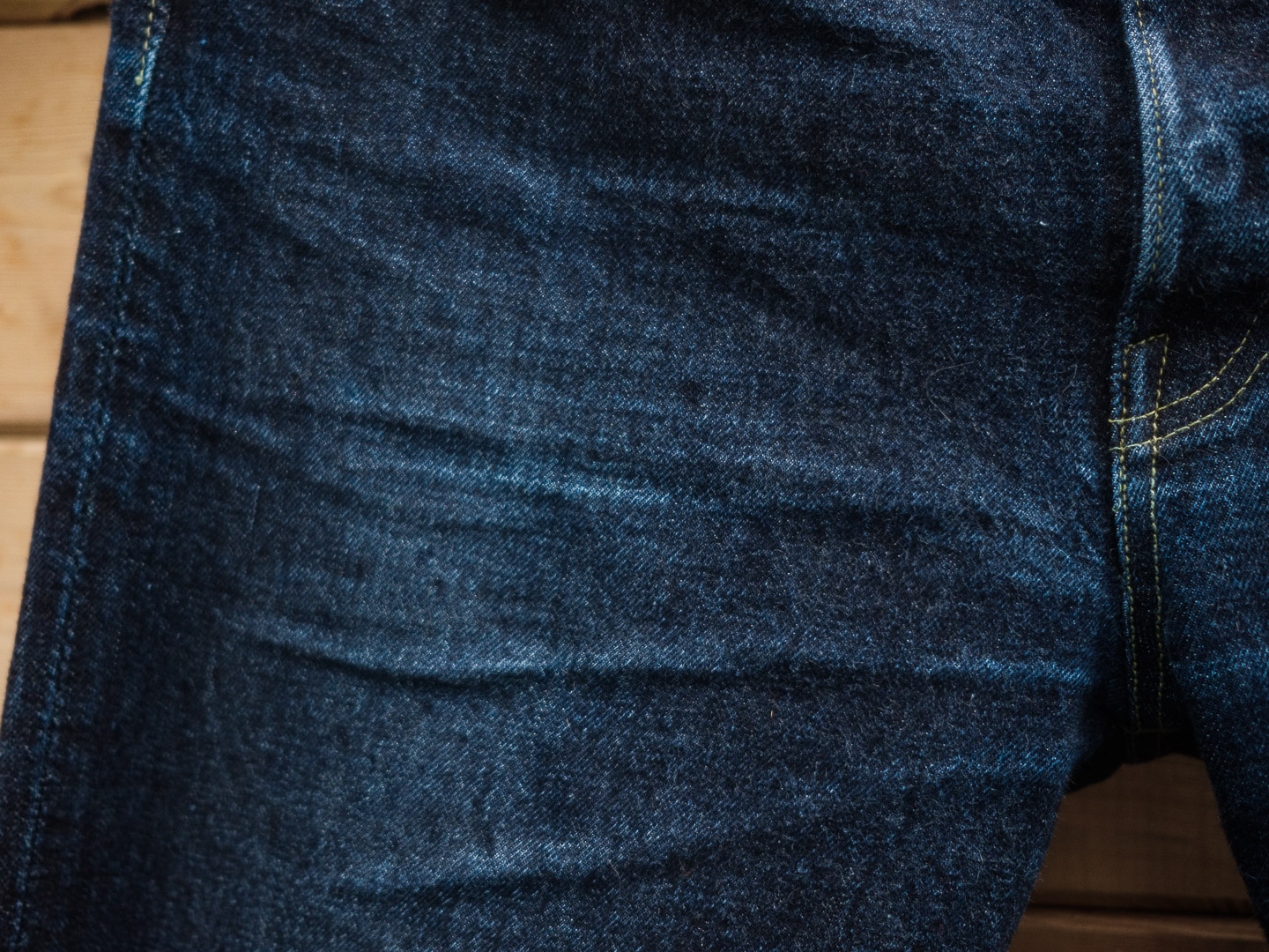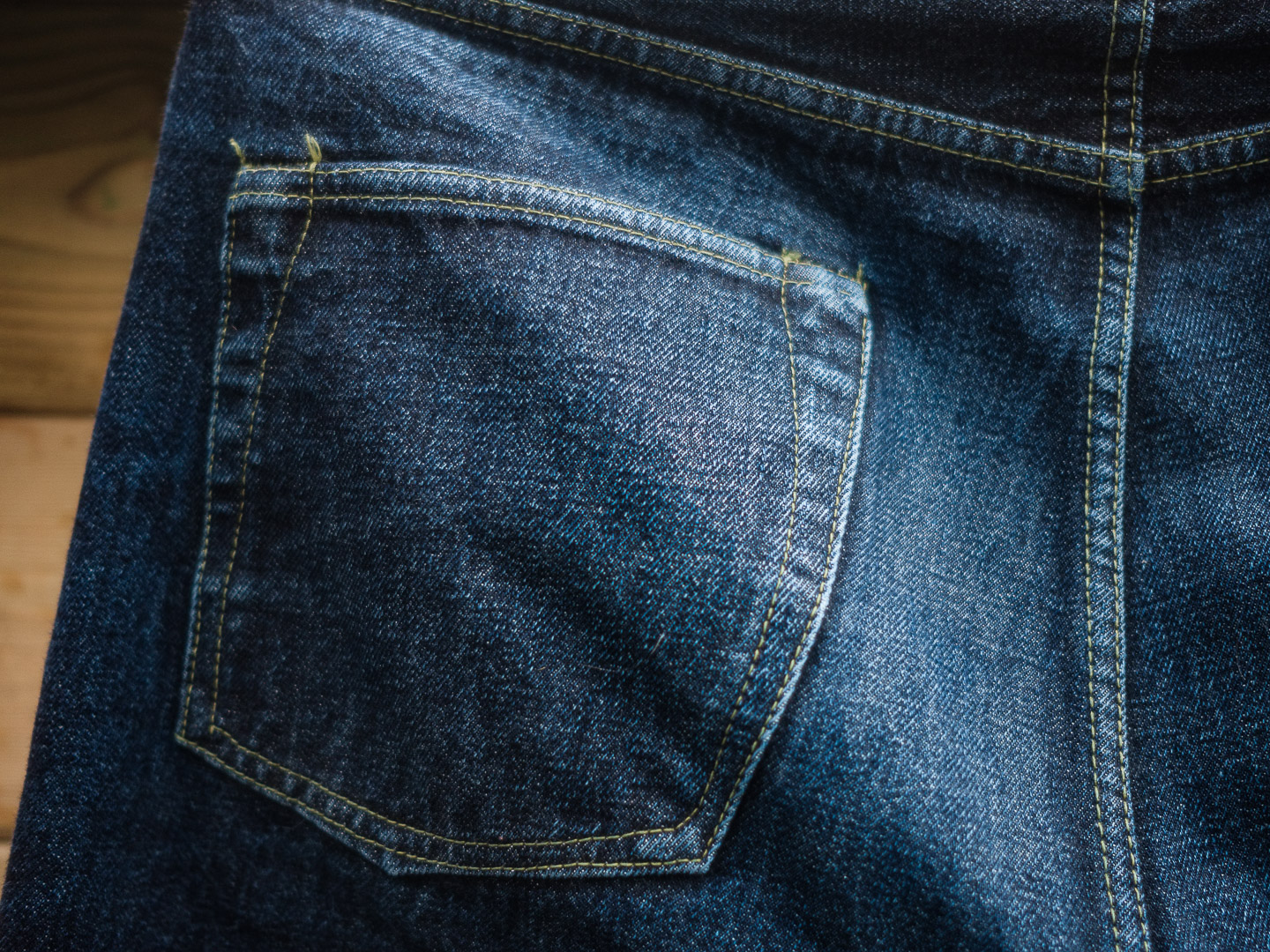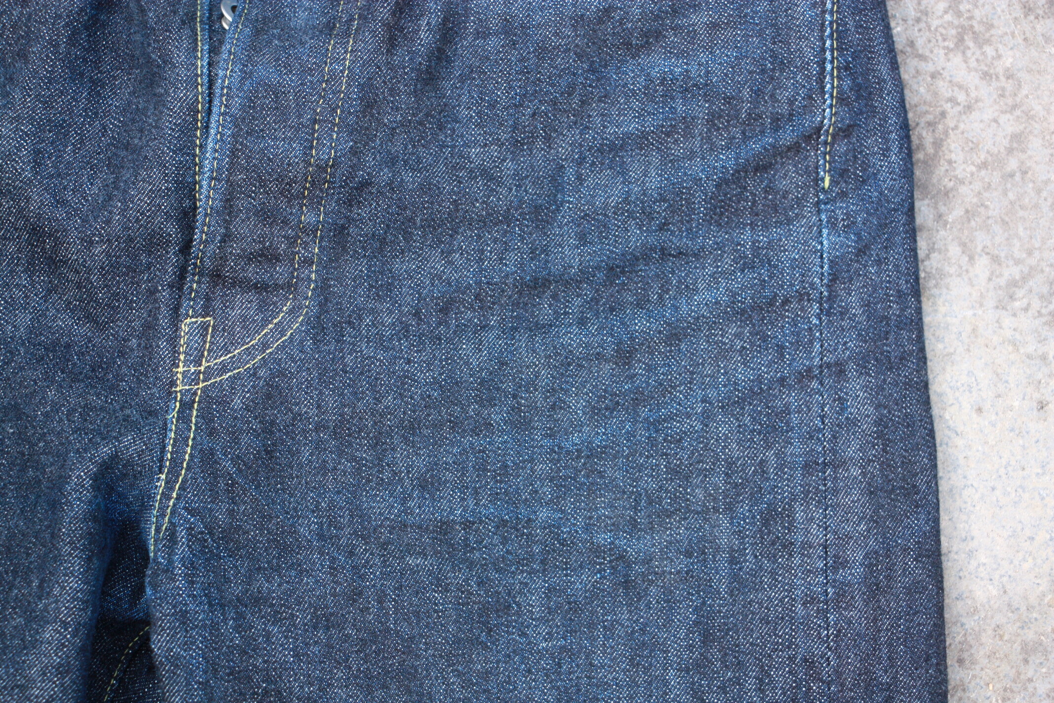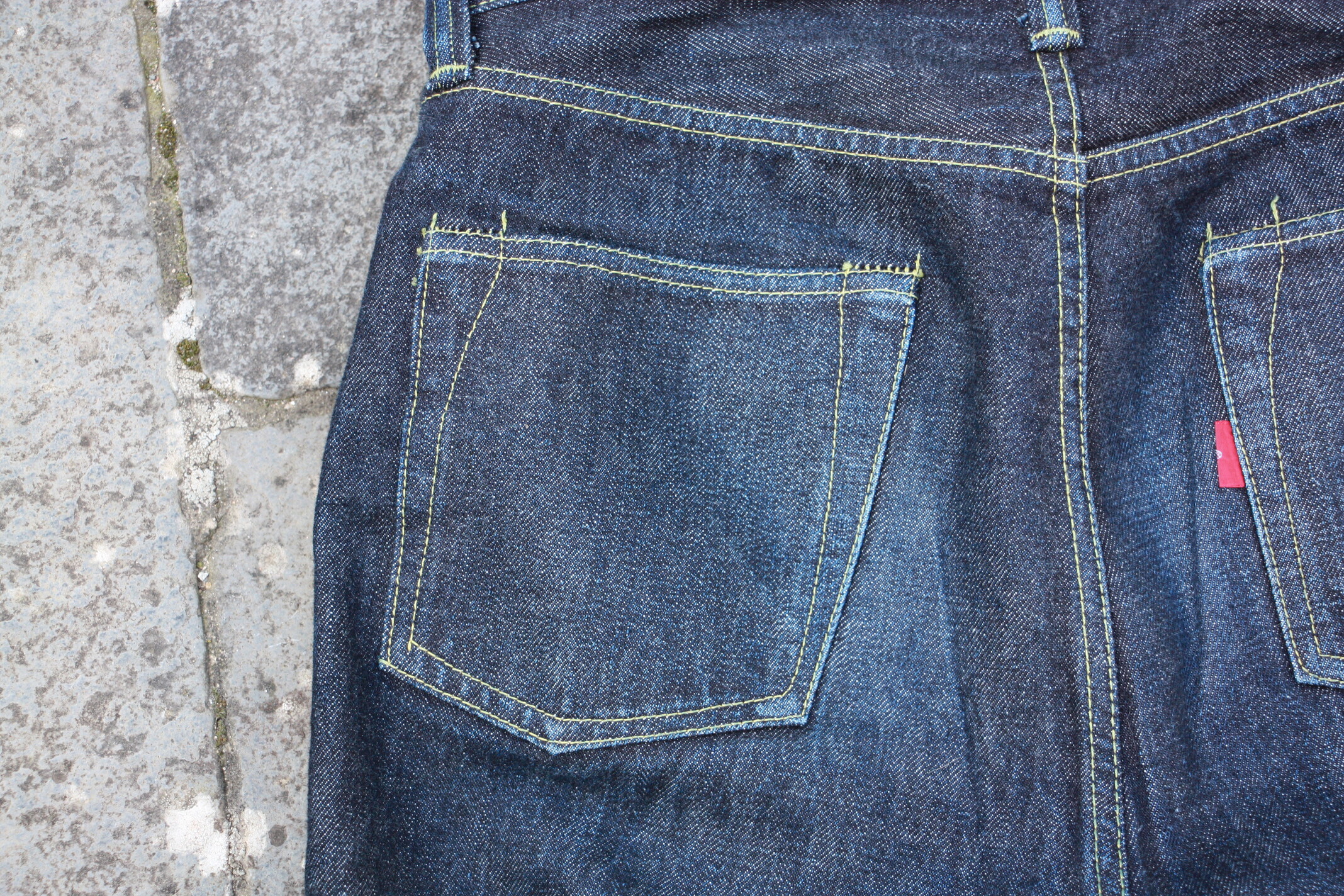 Après tout je crois que c’est un modèle qu’on voit moins. Je l’ai chopper en seconde main et son précédent propriétaire a déjà fait un lavage en machine avec la lessive de SuperStitch mais j’ai préféré repartir sur un lavage à la main pour le moment. Je repasserais sur un lavage en machine plus tard . Ah il a aussi eu droit à un soak a l’eau froide pour pouvoir étirer un peu la fourche et la taille a la main qui était un peu étroites sinon.