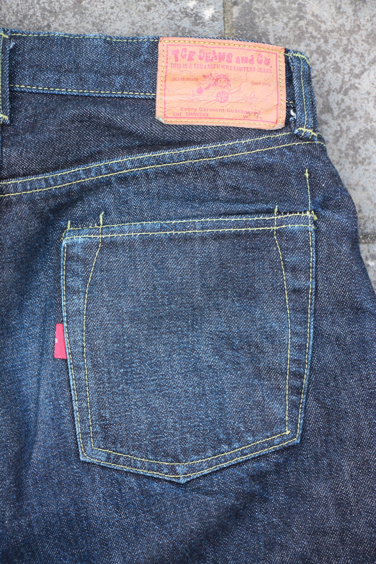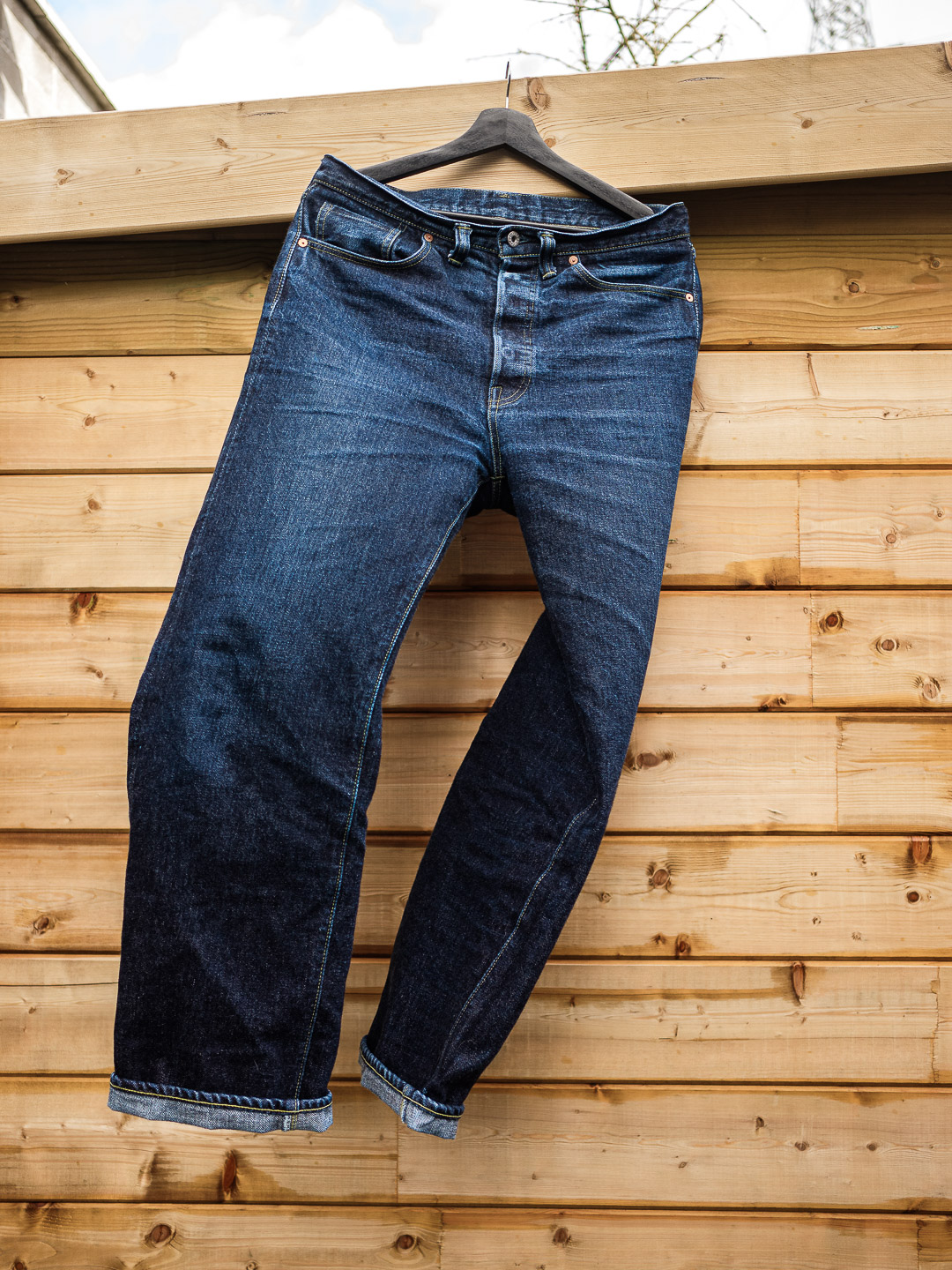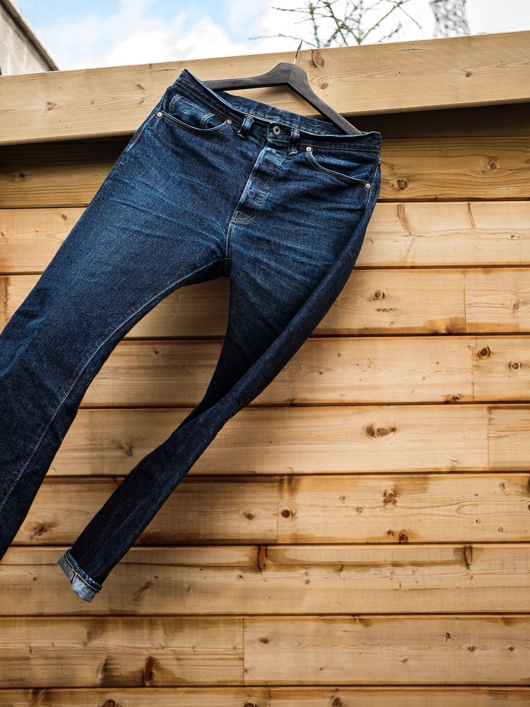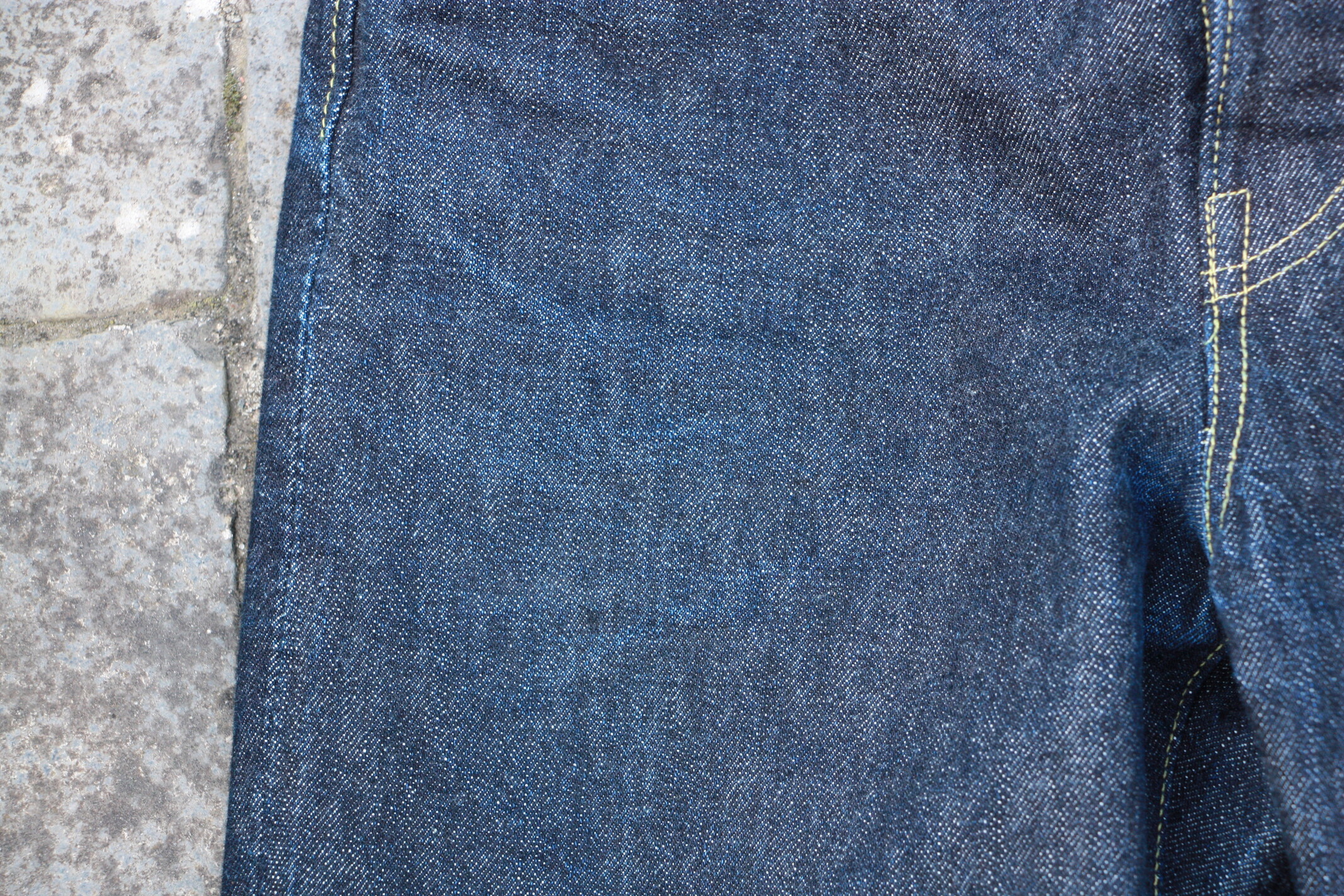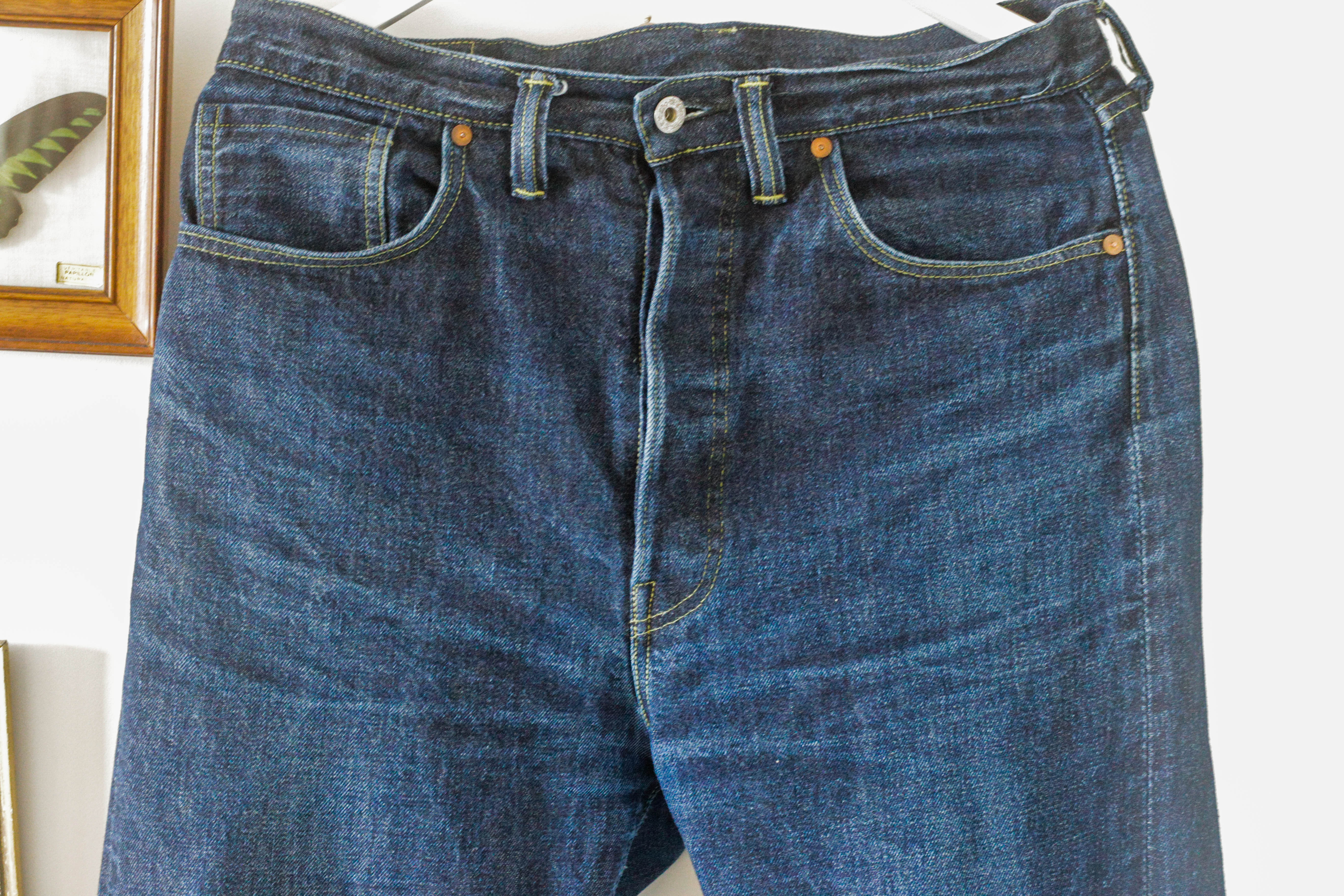 Après tout je crois que c’est un modèle qu’on voit moins. Je l’ai chopper en seconde main et son précédent propriétaire a déjà fait un lavage en machine avec la lessive de SuperStitch mais j’ai préféré repartir sur un lavage à la main pour le moment. Je repasserais sur un lavage en machine plus tard . Ah il a aussi eu droit à un soak a l’eau froide pour pouvoir étirer un peu la fourche et la taille a la main qui était un peu étroites sinon.