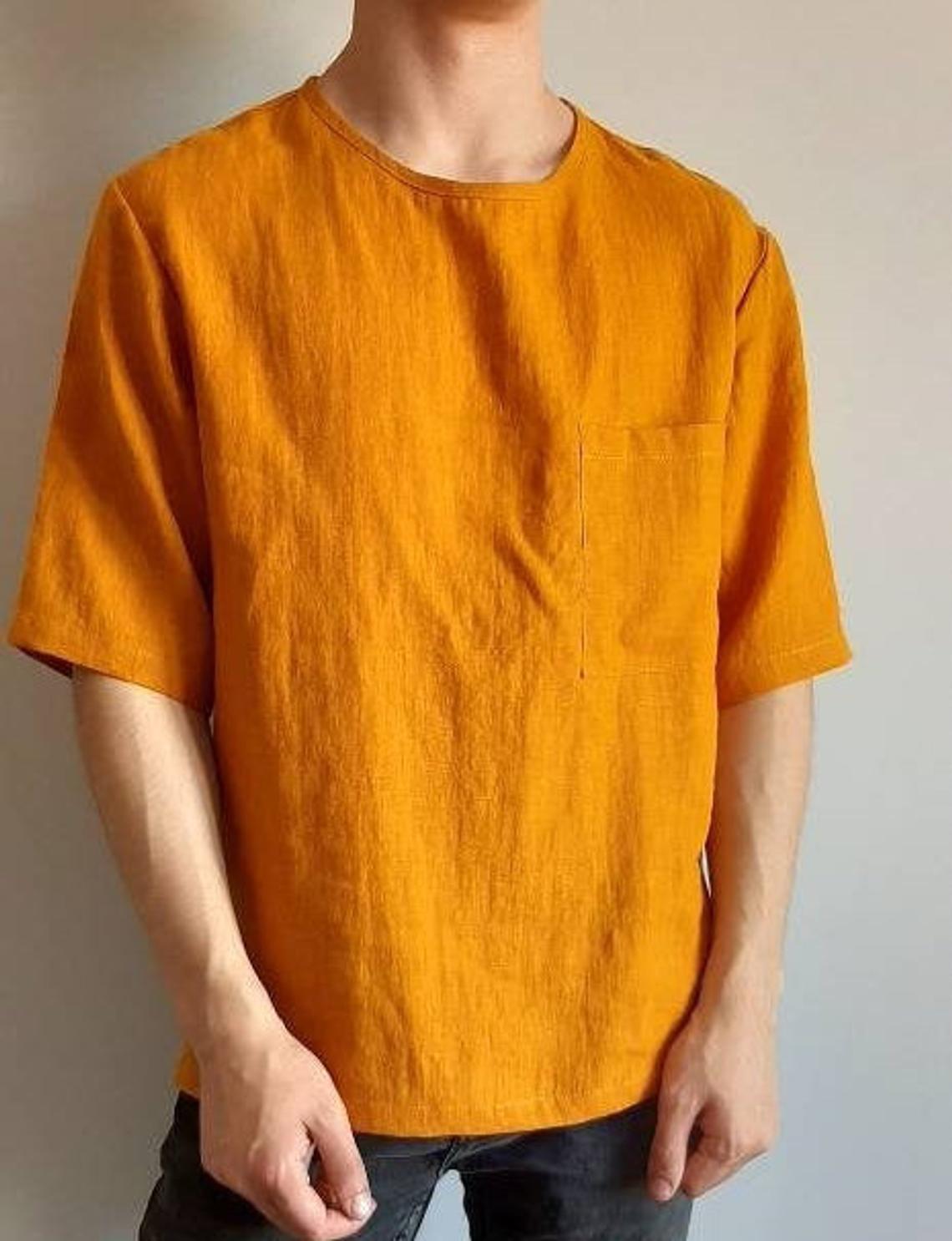 Col rond : https://www.etsy.com/fr/listing/794893512/crew-neck-style-casual-linen-shirt