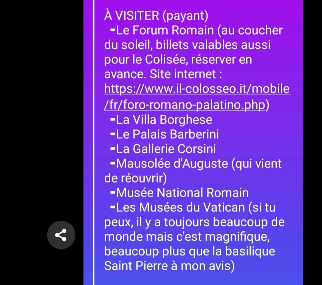Outre les classiques Vatican, Colisée, Forum, Villa BorghÚse, auriez vous des reco en resto/activités ou en boutiques sympa de sappes par hasard ?