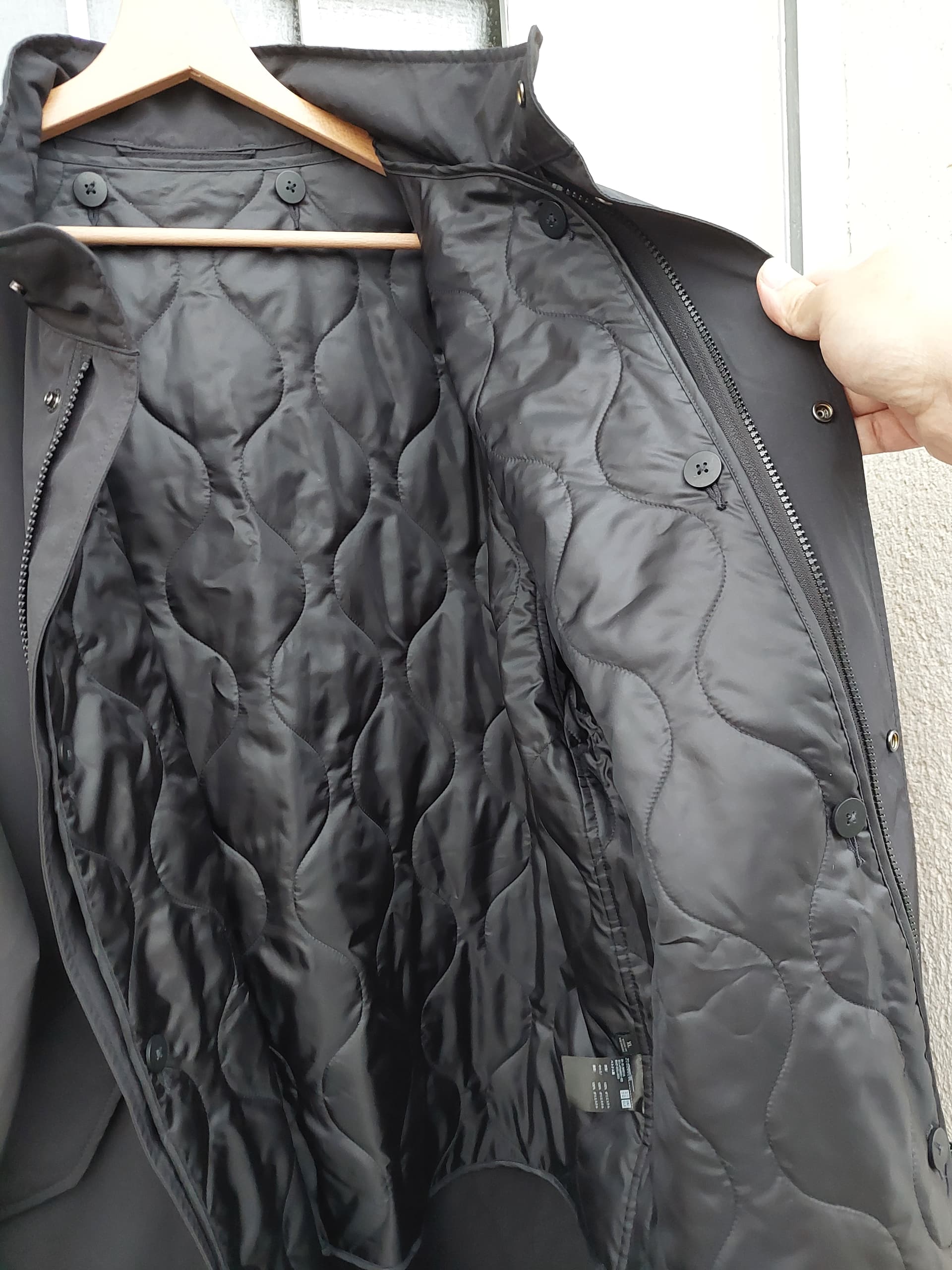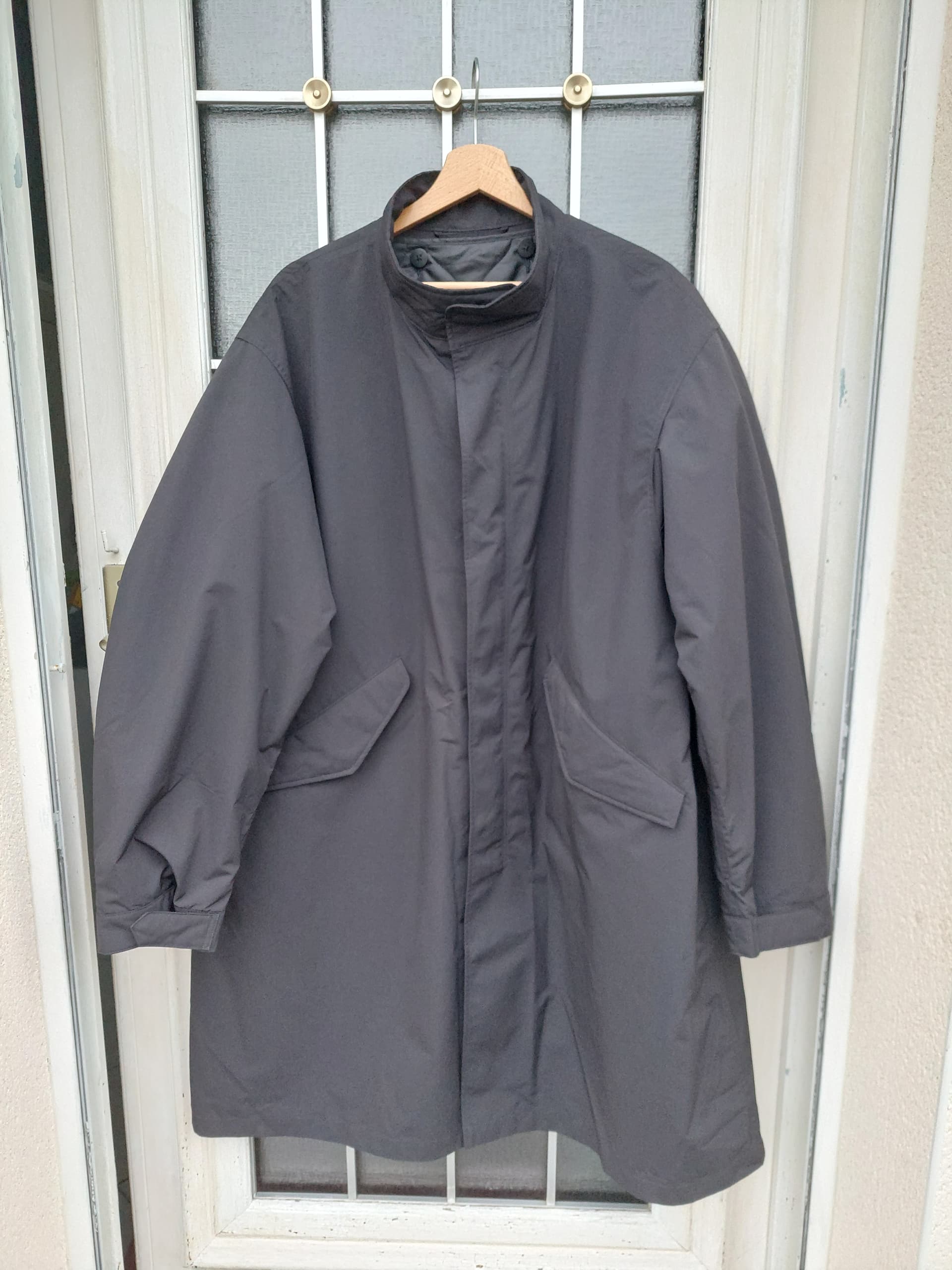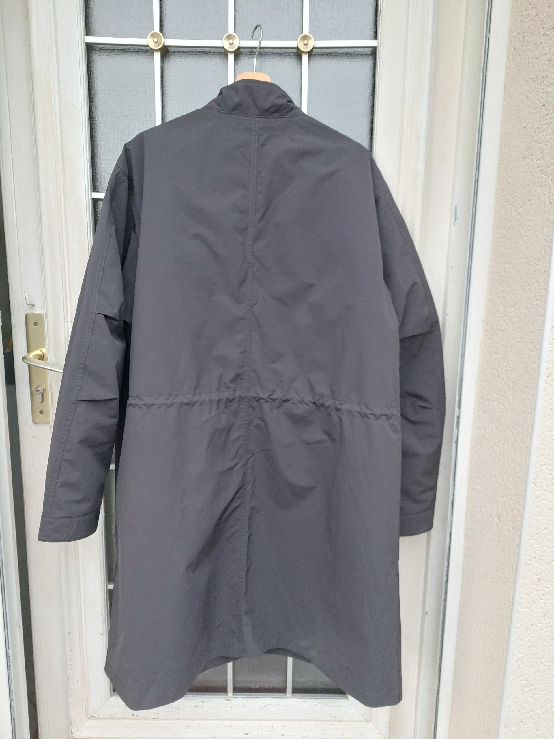 Je l’avais trouvé cool à l’essayage à l’arrache sur place. Puis oublié dans mon placard à mon retour. En la ressortant là, au final je lui trouve un léger manque de longueur (au dos peut-être, à cause du bas droit et non plongeant à la fishtail) et un tombé un peu trop plastique (pas essayé sans le liner) , malgré un très bon confort et légèreté