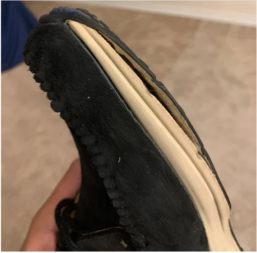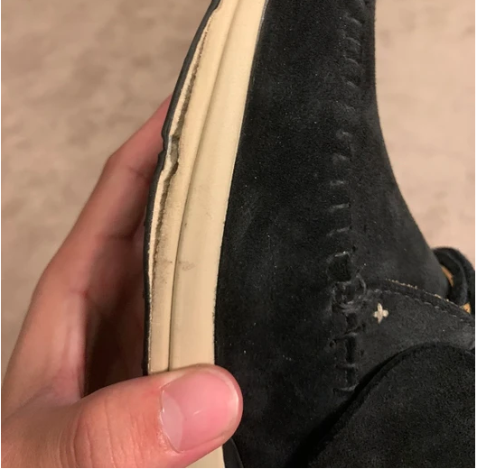 2ème image souvent la partie noire se décolle surtout devant, je suppose que l’on doit trouver des cordonniers pour recoller. (j’ai ce modèle et ca va bientôt être le cas)