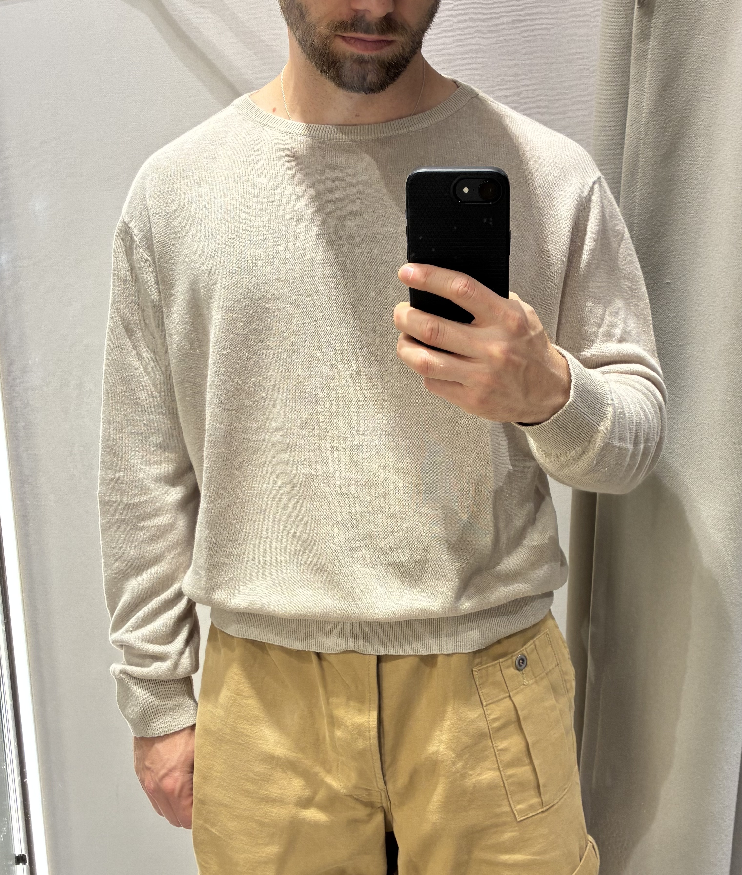 En voulant me prendre une chemise en maille pour la plage, je suis tombé sur ce pull à maille large 100% chanvre sur le site je trouvais le rendu sympa sur les photos je l’ai pris pour les soirées, ça m’a l’air un peu cher pour du Zara mais n’étant pas encore tout à fait expert en qualité je ne me permettrais pas de juger, surtout sur ce genre de pièce qui m’a l’air bien fragile dans tous les cas (ce qui me permettra également d’être plus relax quant à l’abîmer).