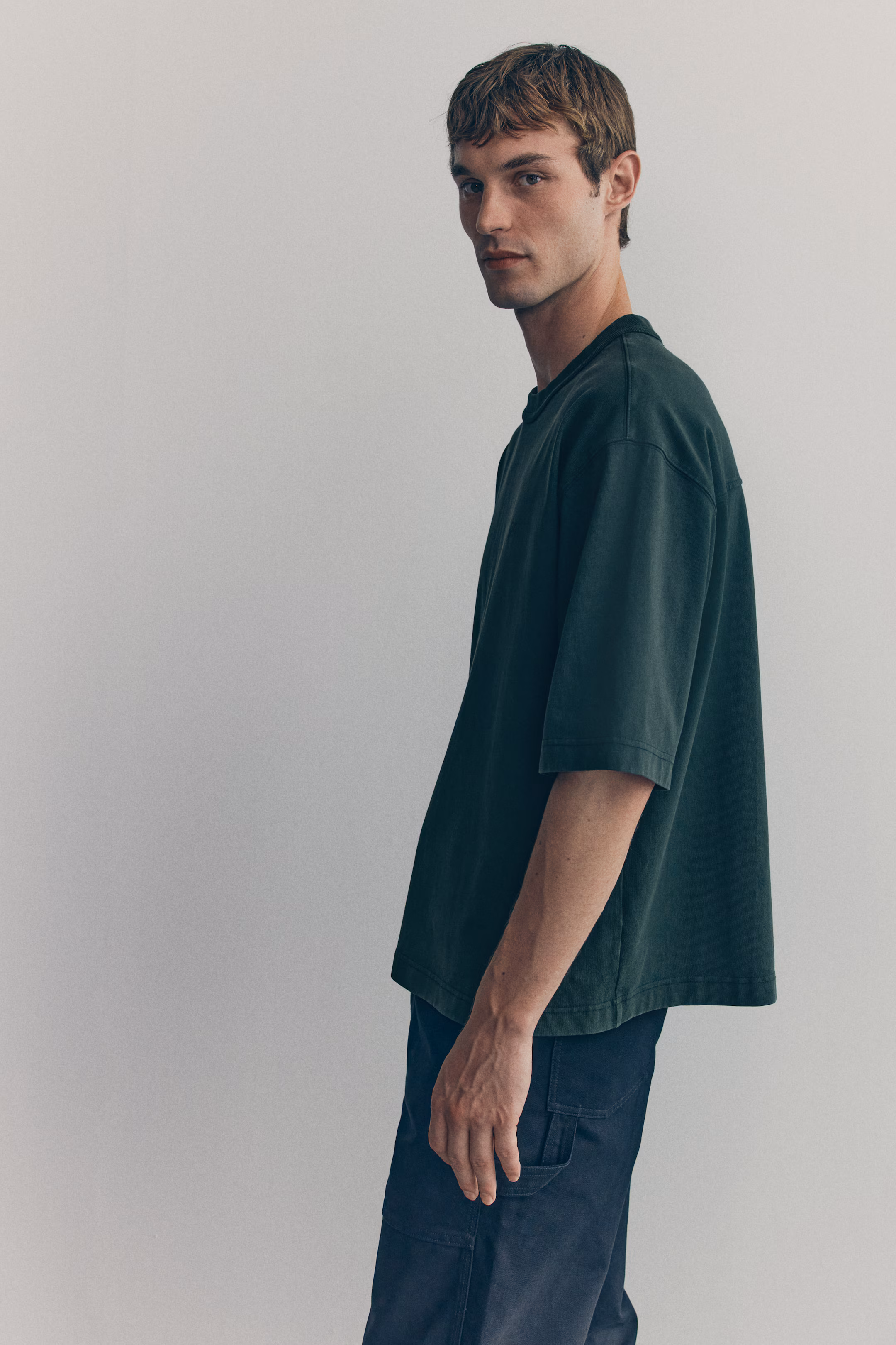 Coupe loose-boxy avec épaule tombante, à première vue pas mal dans son genre. Le coton semble bien épais, et les finitions, assez soignées. Le tout justifiant plutôt le prix affiché.