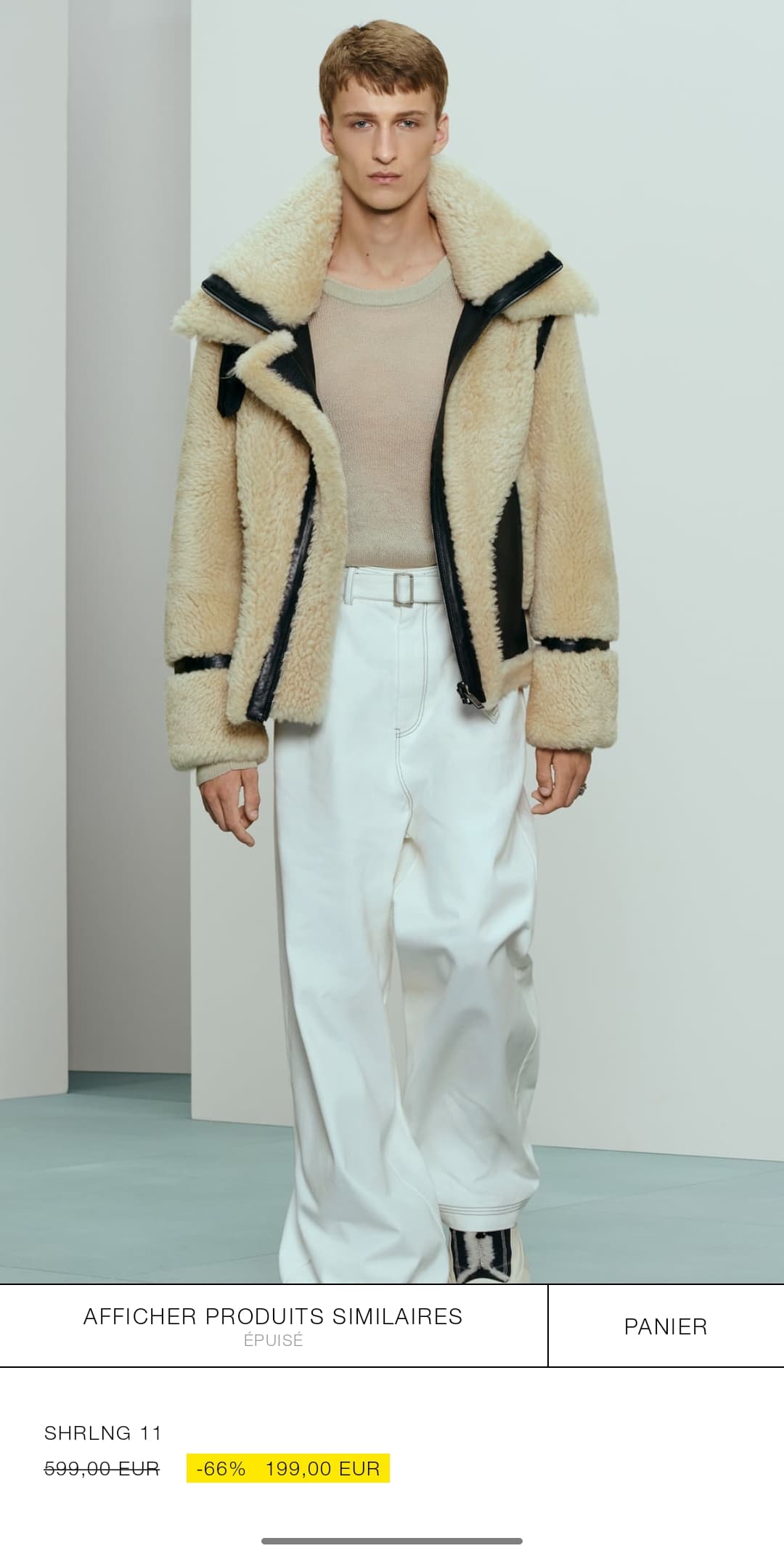 J’aurais bien tenté ce shearling bien soldé et Made in Spain, arrivé trop tard tant pis. D’ailleurs cette collection « SRPLS » que je ne connaissais pas (inspiré de vêtements militaires) est vraiment très cool.